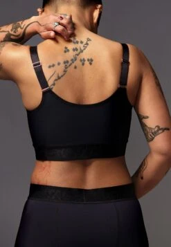 Designed with a short length, wide neckline, and a low-cut back, the Athletic Binder is ideal for workouts, providing both support and a sense of gender affirmation. The Athletic Binder is made from two different soft and breathable fabrics that move and breathe with the body. Consequently, the lungs and ribs remain unobstructed, enabling freedom of movement.