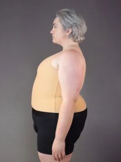 Designed with a short length, wide neckline, and a low-cut back, the Athletic Binder is ideal for workouts, providing both support and a sense of gender affirmation. The Athletic Binder is made from two different soft and breathable fabrics that move and breathe with the body. Consequently, the lungs and ribs remain unobstructed, enabling freedom of movement. The short fit of the binder makes it a great item to work out in or to wear on a daily basis. This binder is also suitable to swim in!