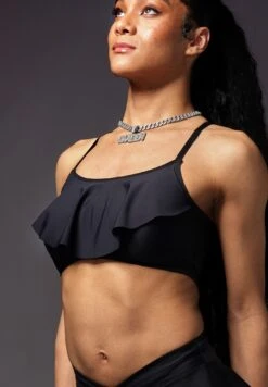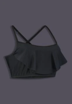 The Bikini Top Ruffle is a comfortable and sporty swimming top with separate pouches for breast prosthetics. These pouches will keep your breast forms in place while you’re swimming. Since the ruffle creates a natural curve of the chest, this bikini top is very suitable to be worn without breast prosthetics. The comfortable material of the Bikini Top Ruffle is made to withstand sunlight, and salt- and chlorine water. Please note: this is just the top, not a full bikini.Â