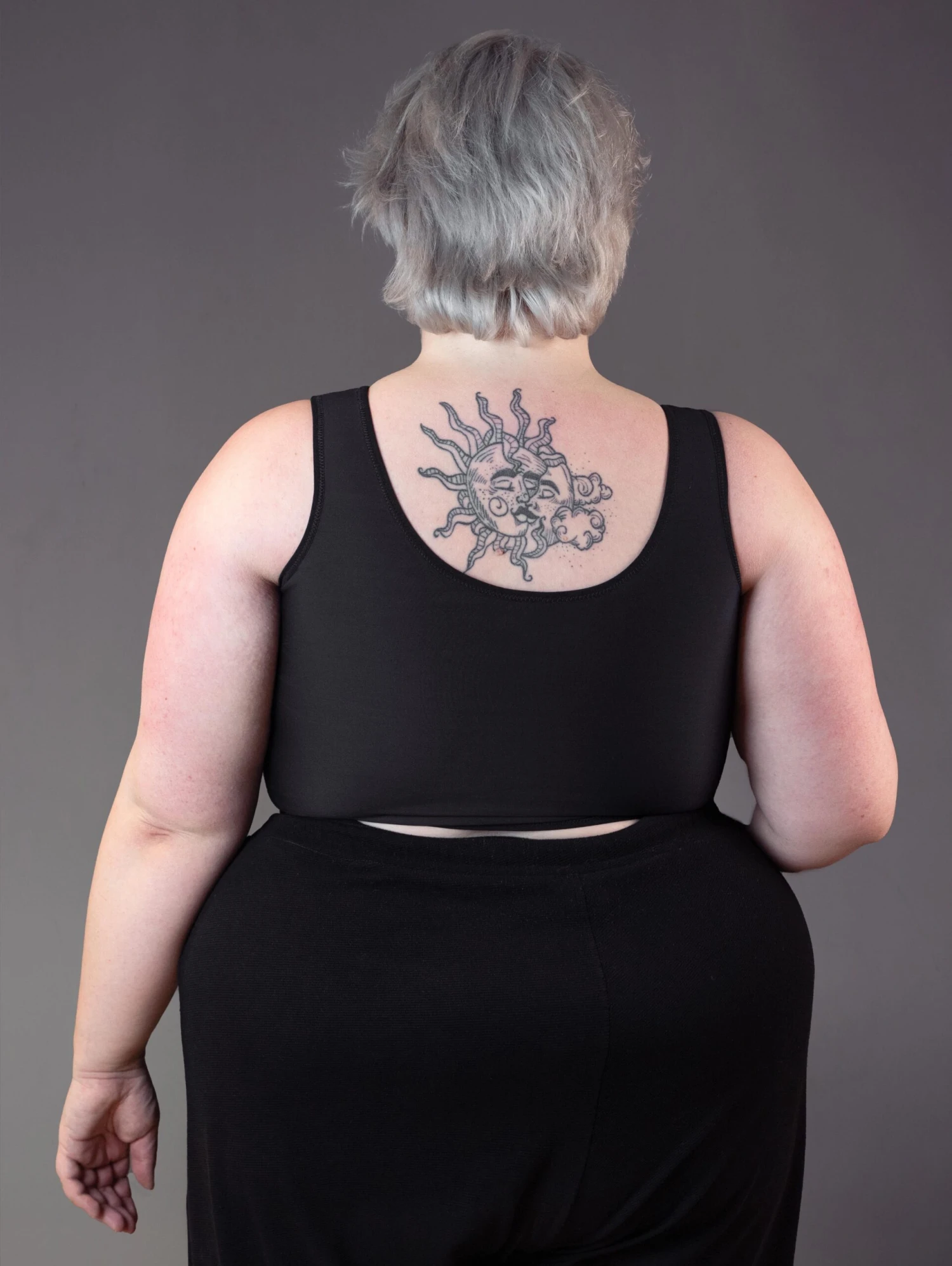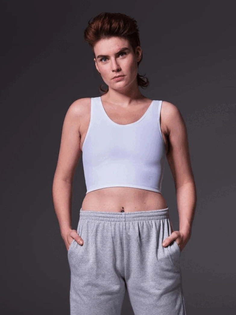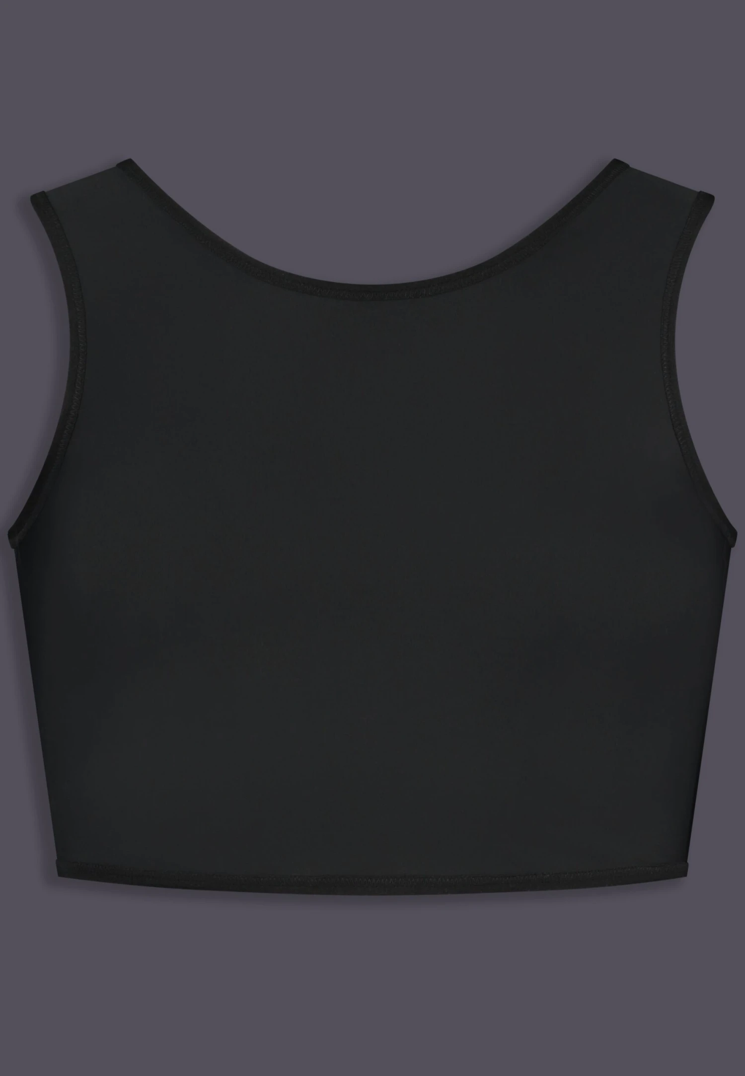The Gym Binder offers compression of the chest and is perfect for an unbothered workout. Because of the advanced breathable 4-way stretch fabric this binder moves with the body. Consequently, the lungs and ribs remain unobstructed, enabling freedom of movement. The Gym Binder is cut lower at the back to create more room for the lungs during exercise. This binder has a short fit which puts less pressure on the midriff. This makes the Gym Binder great to wear in the gym or during an active day. The Gym Binder Extra strong is great for people who have more firm breasts or a larger chest that needs stronger compression.