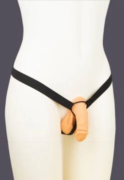 The Harness ring is a comfortable garment that helps keep your penis prosthetic in place. You won’t have to worry about it falling out. With this harness you can wear your prosthetic on the skin to give a more natural feel, even during your bathroom visit or while having intercourse. This item can be worn either as a thong or as a jockstrap. The Harness Ring is made from a strong elastic and a rubber ring. This harness is One Size, but the waistband and straps are adjustable in length so you can easily adjust it to your size.Â