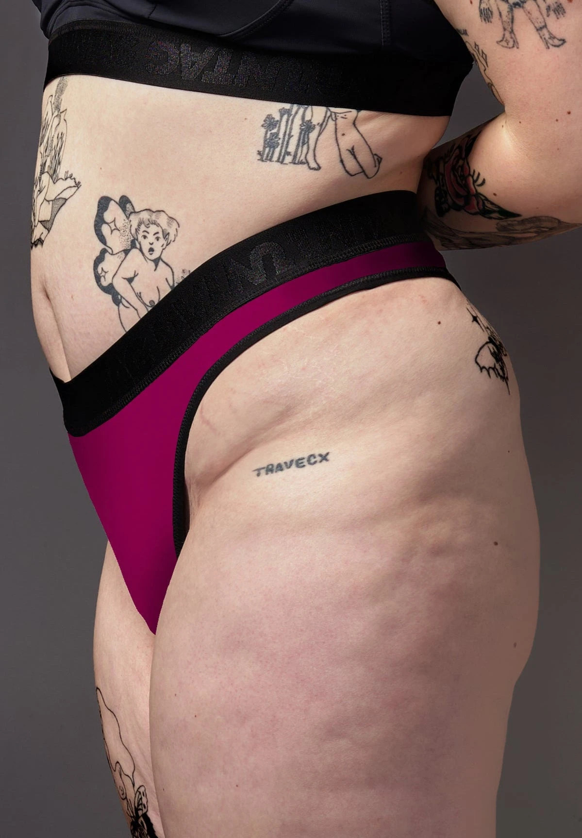 The High Waisted Tucking Thong is a high-waisted gender-affirming thong that hugs your body. It flattens the penis for a smooth and sleek look. The advanced breathable material ensures that the penis stays comfortable and flat against the body. This will allow you to move freely with a secure feeling. This tucking thong is very useful for people who don’t want to use tape for tucking. You can tuck for the whole day and still be able to use the bathroom. This thong can either be worn with a full tuck or a semi-tuck. The High Waisted Tucking Thong leaves the buttocks exposed to prevent visible panty lines.