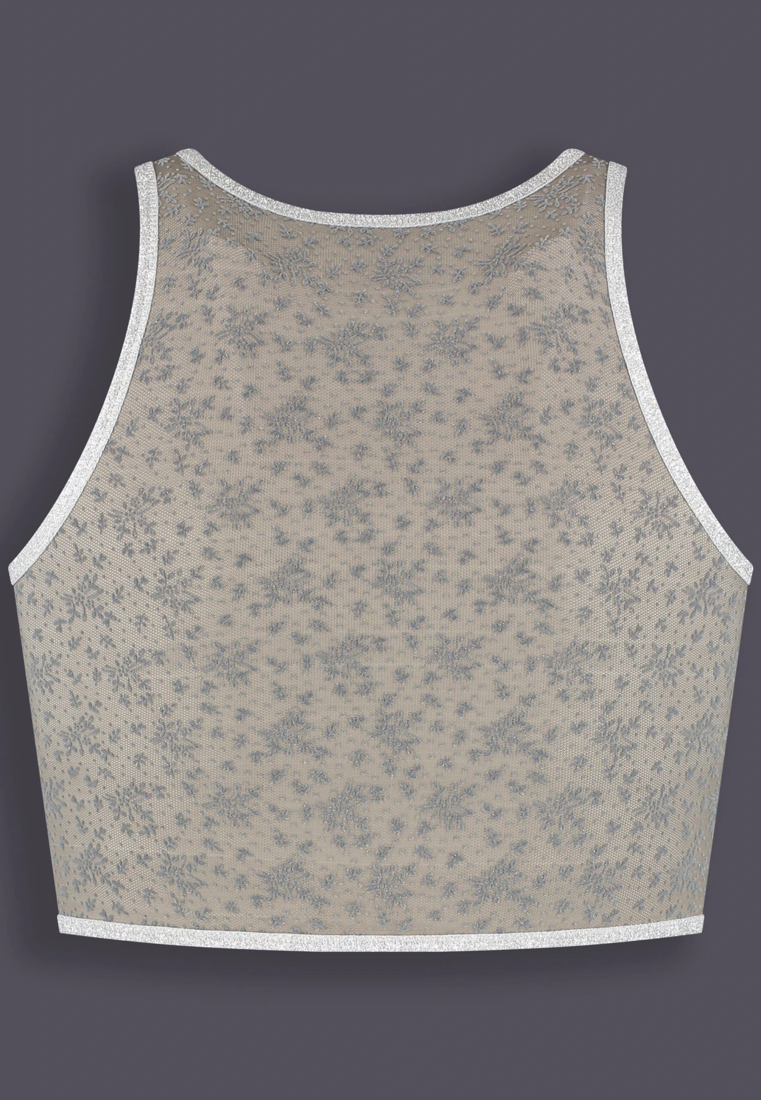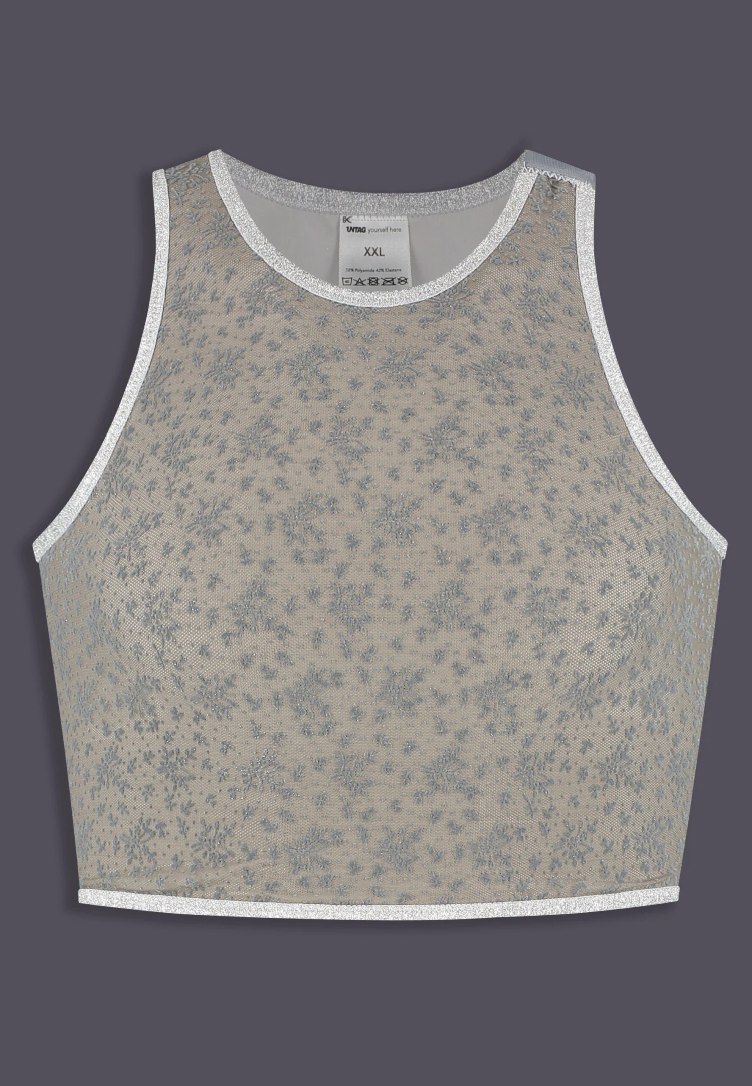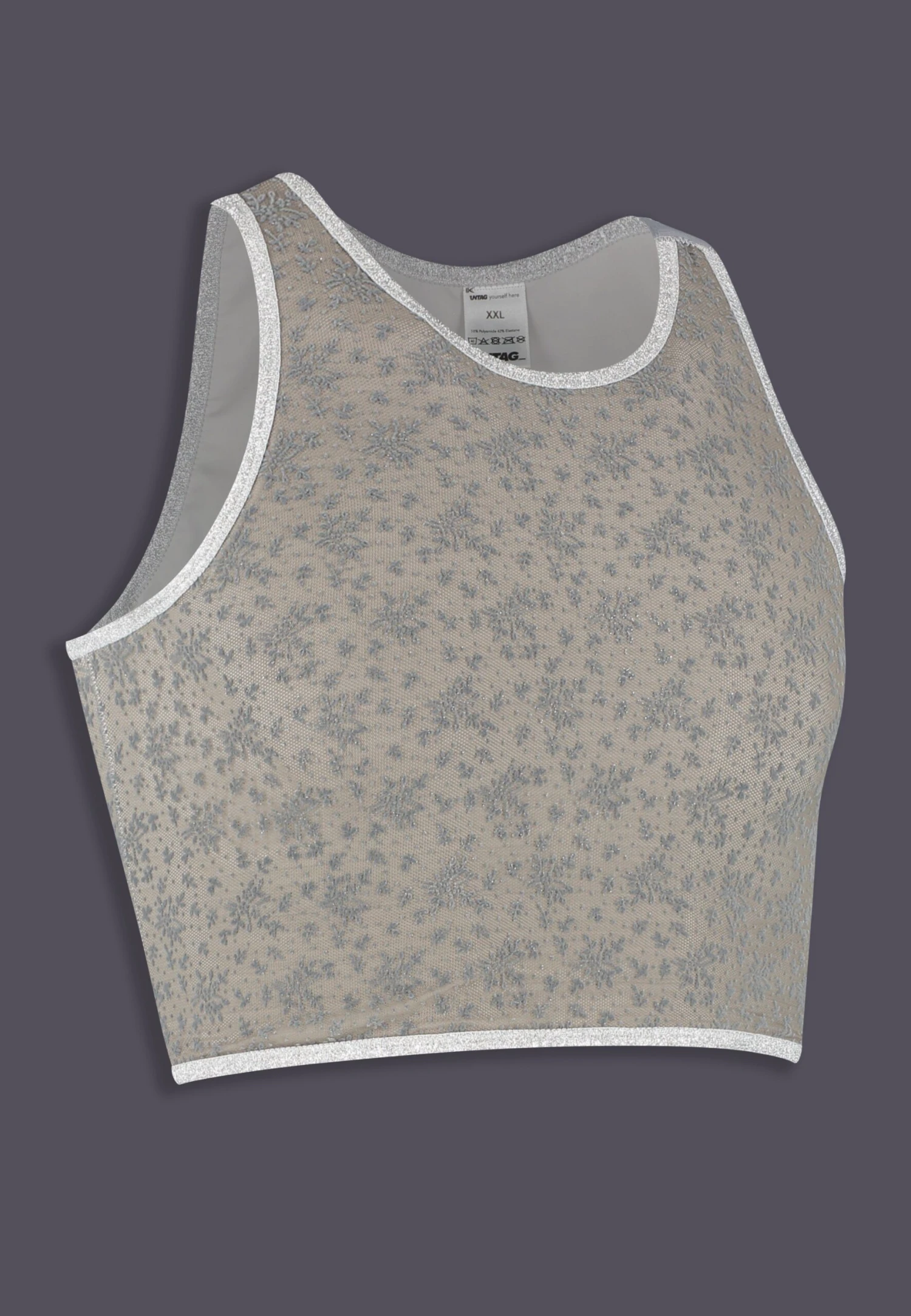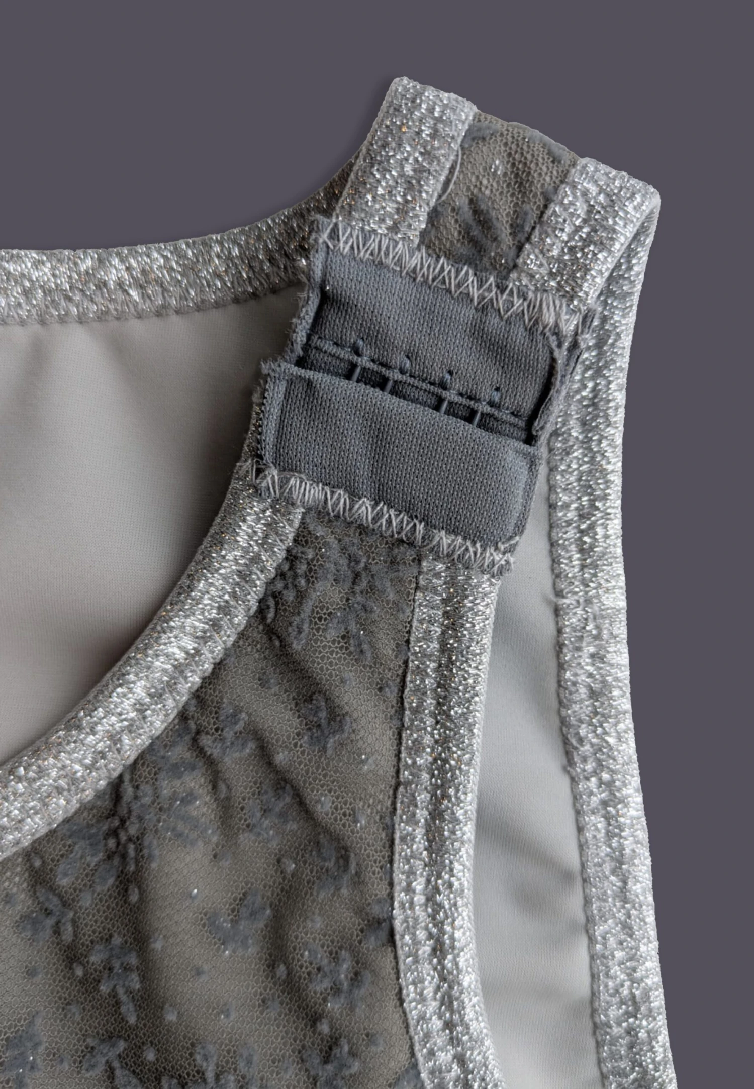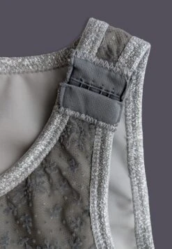 The Lace Binder Silver combines compression and comfort with a striking design. Its sleek silver lace overlay makes it almost too good to hide under a T-shirt. To top it off, the binder is finished with a sparkling silver trim. Thanks to the halter-style neckline, your shoulder blades have full freedom of movement, while the hook-and-eye closure on the left shoulder ensures that it is easy to put on and take off.