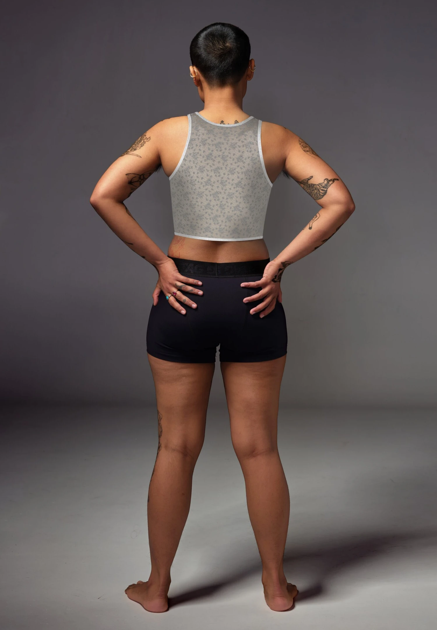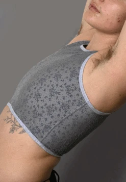 This edgy binder, finished with silver lace and soft grey fabric, offers firm and safe compression while allowing your shoulders to move freely. The Lace Binder Silver is designed to be more than just a binder—it’s a stylish top that deserves to be seen. Perfect for Pride, festivals, or a bold everyday look.