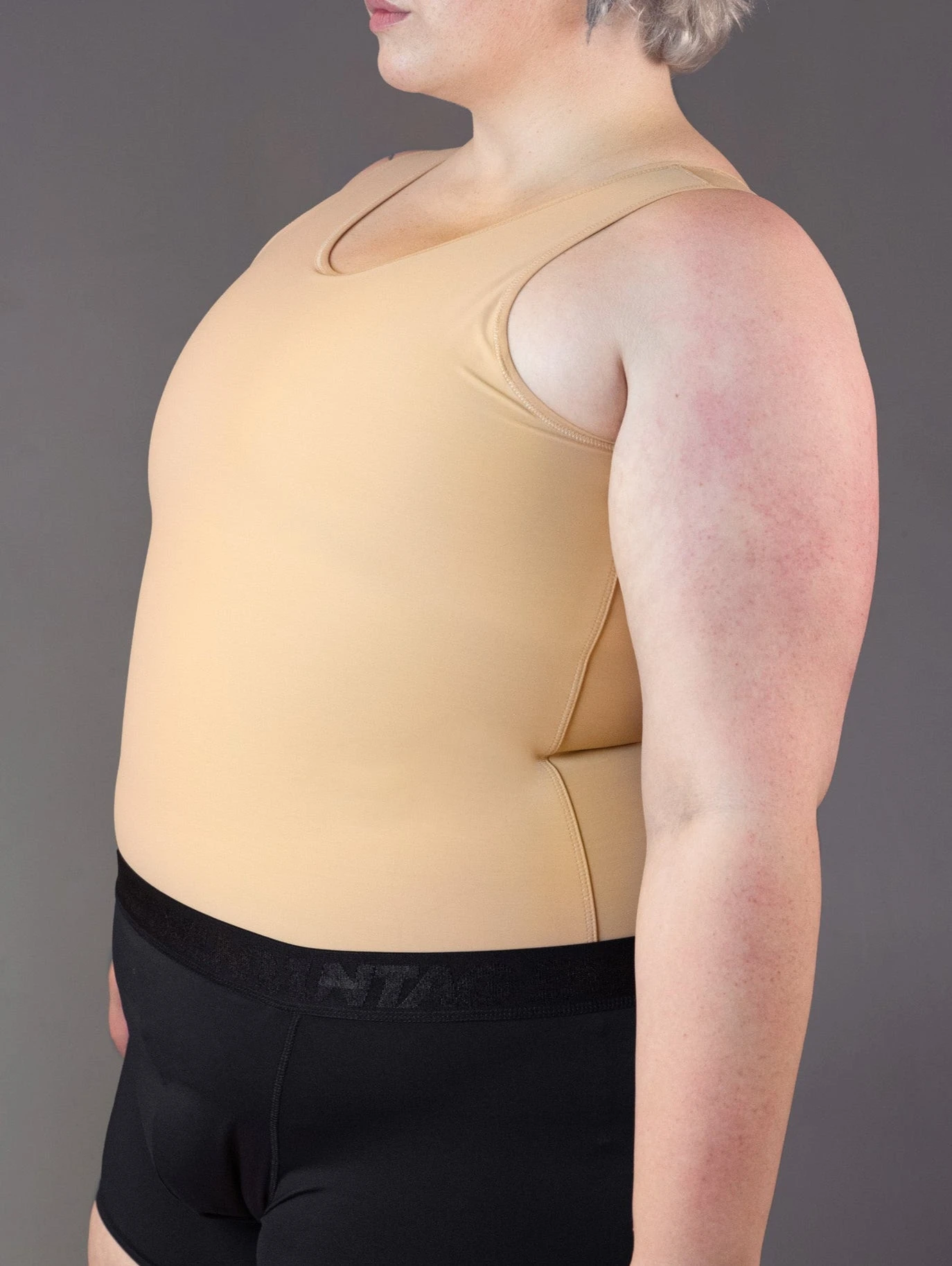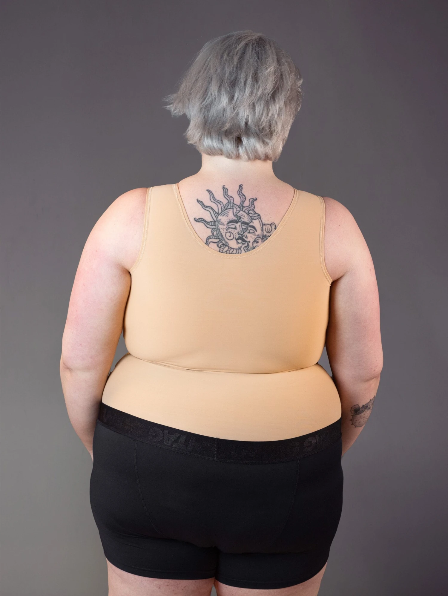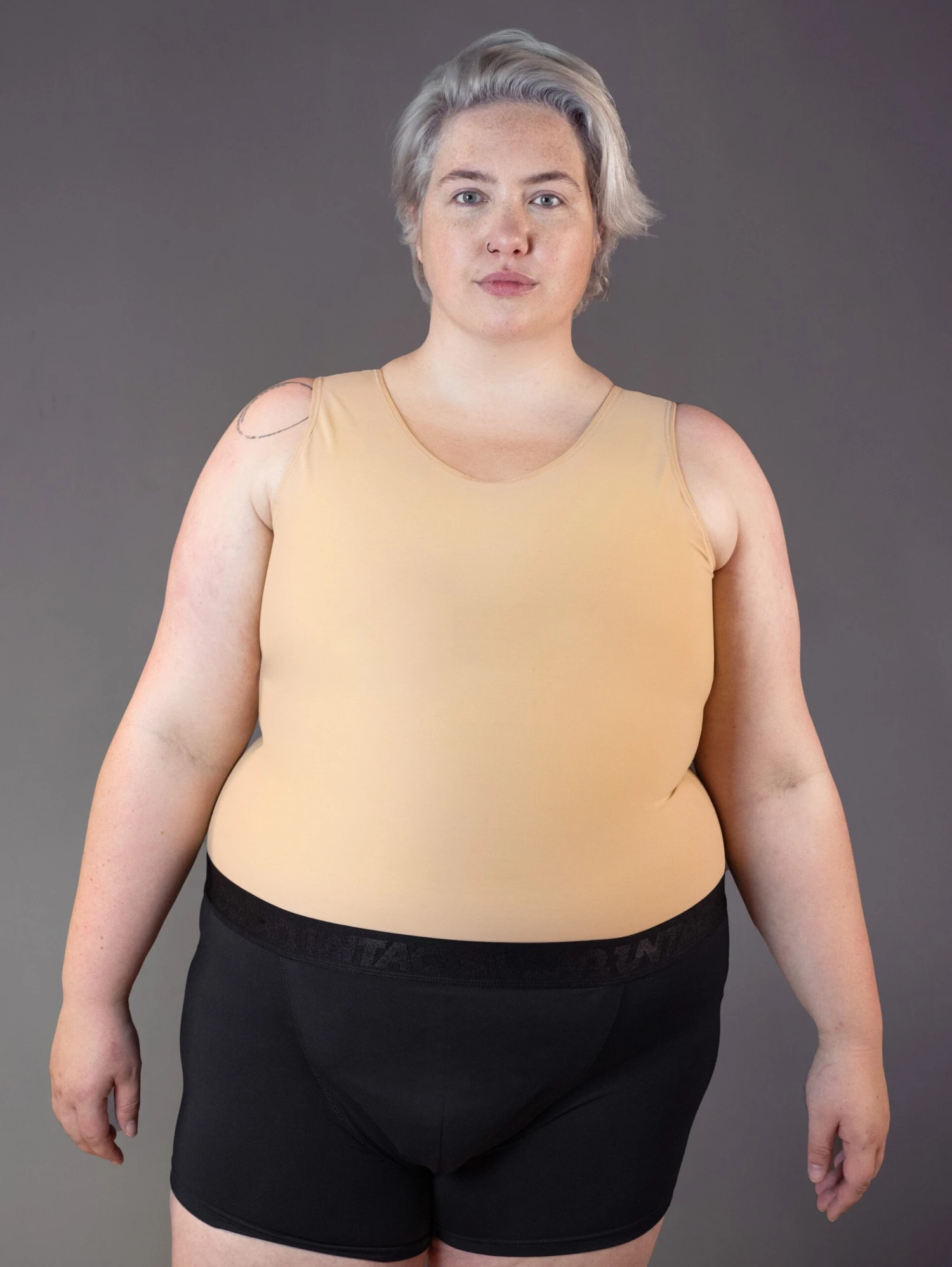 The Shirt Binder offers compression of the chest. It’s made from a soft and stretchy fabric and has hidden seams for added comfort. The binder moves with the body because of the 4-way stretch of the fabric. Consequently, the lungs and ribs remain unobstructed, enabling freedom of movement. This binder has a longer fit to cover the stomach and hips. This makes the torso look more straight.