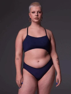 The Strappy Bikini Top is a comfortable top that has built-in pouches for breast prosthetics. This top is made from a soft fabric for ultimate comfort. The pouches ensure that the prosthetics stay in place while you move around, for a secure and feminine feeling. The Strappy Bikini Top has a short fit and adjustable straps that can be worn straight or crossed.Â