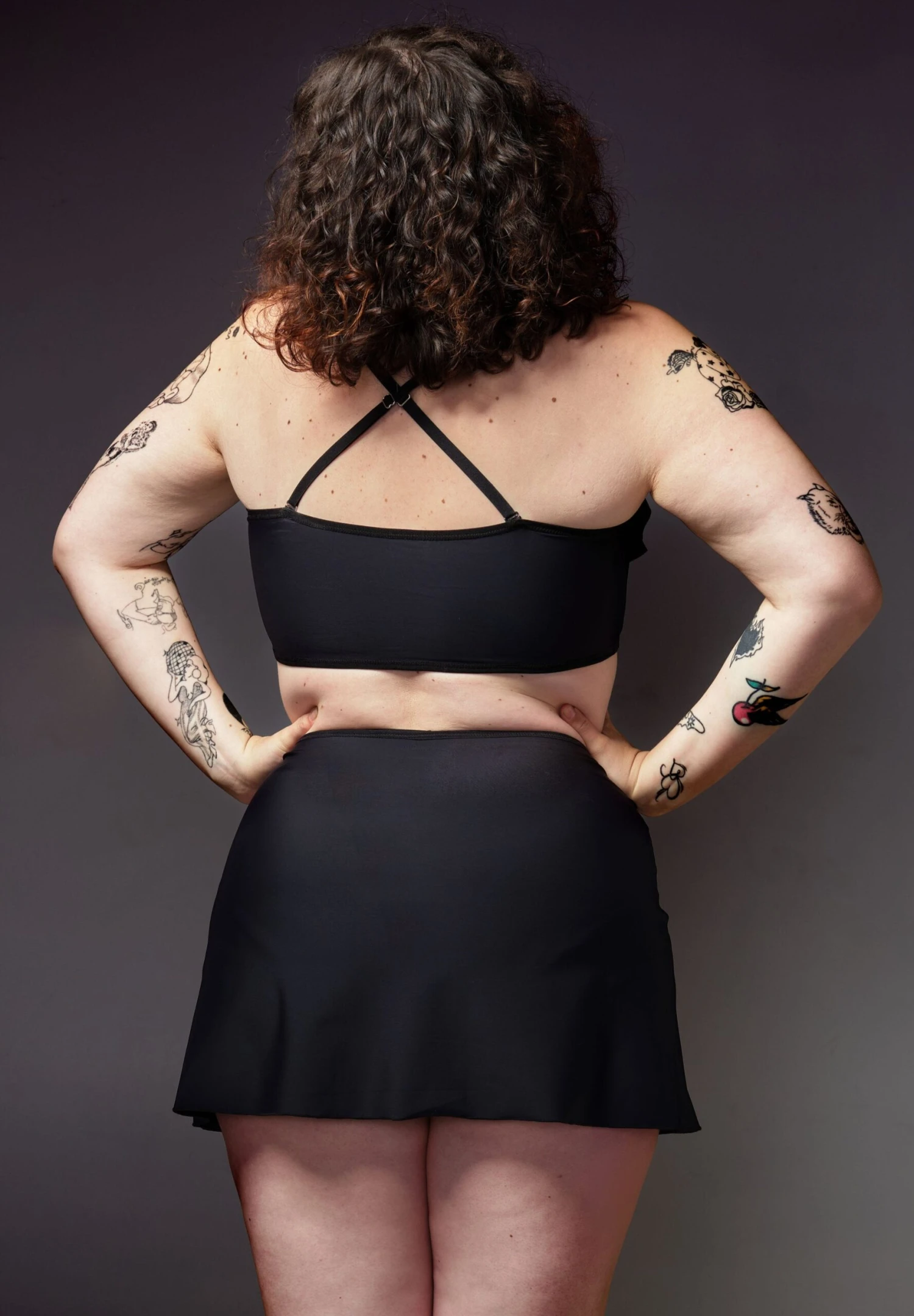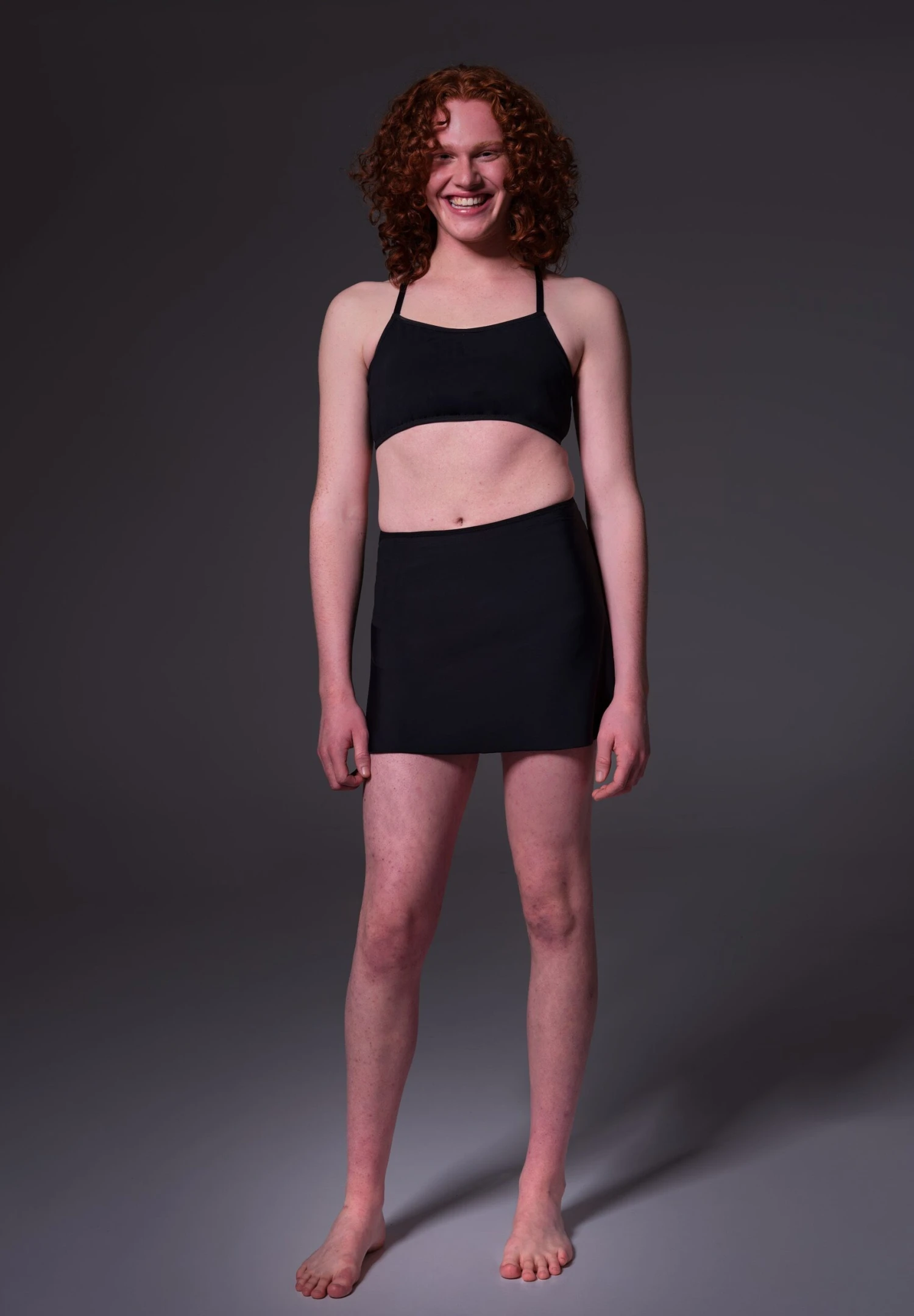 The sporty gender-affirming swimming skirt, for a feminine feeling while you swim.