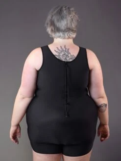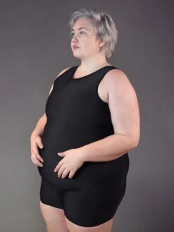 The sturdy zipper is designed for versatility, allowing the swimsuit to be worn with the zipper at the front or the back, depending on your preference. This makes it both practical and comfortable. The Swimsuit Binder features broad shoulder straps and short legs for a streamlined figure. While there is no extra pouch for a penis prosthetic, the suit can be combined with the harness ring or foam penis padding.