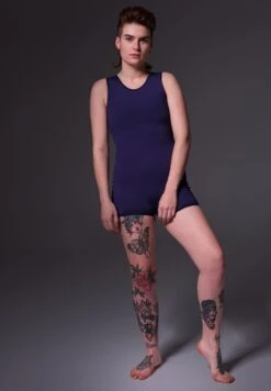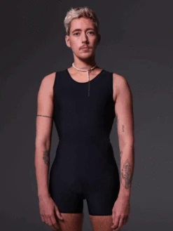 The Swimsuit Binder is a sporty swimsuit with a built-in binder. The fabrics of this swimsuit are designed to withstand sunlight, salt and chlorine water. The short binder is integrated on the inside of the swimsuit. An extra layer of mesh fabric ensures a flat chest. The advanced material moves with the body. Consequently, the lungs and ribs remain unobstructed, enabling freedom of movement.