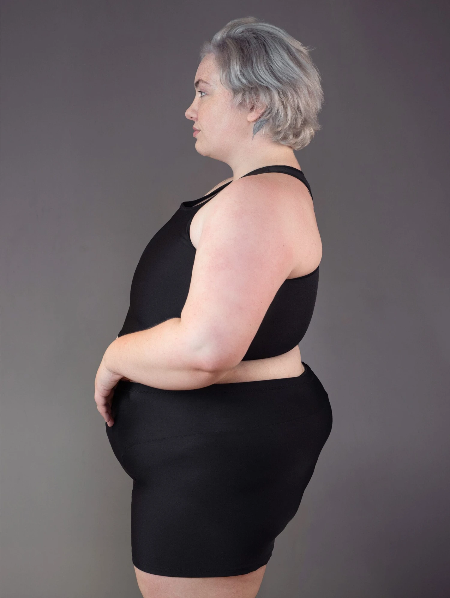 The Tank Swim Binder offers compression of the chest and has a racerback cut on the back. This allows the shoulder blades to move freely. This binder can be worn for any kind of swimming activity. The combination of the mesh fabric and the compression stretch front panel, makes that the binder dries quickly and will not be transparent when wet. The mesh material is designed to withstand sunshine and salt and chlorine water. The 4-way stretch fabric moves with the body. Consequently, the lungs and ribs remain unobstructed, enabling freedom of movement. The Tank Swim Binder has a short fit making it great for a day at the pool or beach, but can also be used in the gym.