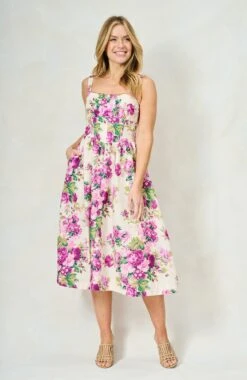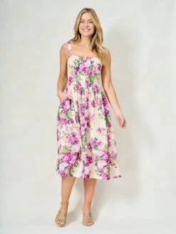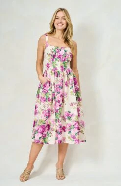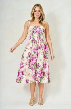 Perfect for sunny days, The Alina is cut with a flattering, fitted bodice and a full skirt for a feminine feel. It’s printed with vintage-inspired florals for a pastoral mood. We love how the shoulder straps are still wide enough to wear with a bra, while the smocked back creates a flexible fit.
