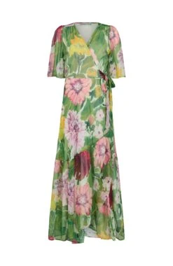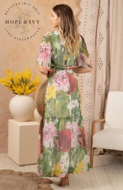 The Amira Flutter Sleeve Maxi Wrap Dress with Tie Waist