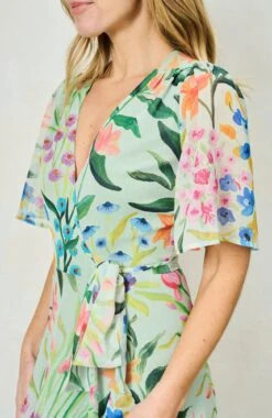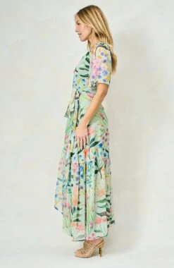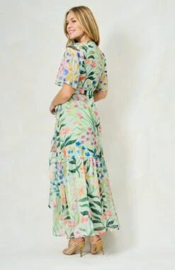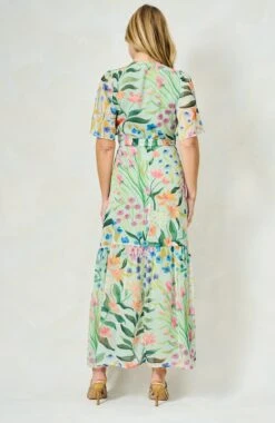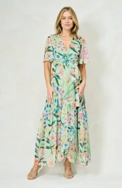 Experience signature Hope & Ivy print handwriting and a classic silhouette in this design. Cut to a sweeping maxi length from soft chiffon, The Bonnie wrap dress exudes a romantic, floaty feel that’s perfect for special occasions. The green base is decorated with a hand-painted floral print for a springtime mood. The feminine flutter sleeves and adjustable tie-fastening wrap front ensure a streamlined silhouette that’s sure to turn heads.