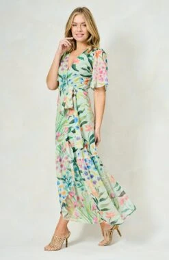 The Bonnie Flutter Sleeve Maxi Wrap Dress with Tie Waist