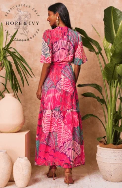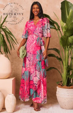 Experience signature Hope & Ivy print handwriting and a classic silhouette with this design. Cut to a sweeping maxi length from soft chiffon, The Cordelia wrap dress exudes a romantic, floaty feel that’s perfect for special occasions. The vibrant, red base is decorated with a dazzling, contemporary print that’s guaranteed to have heads turning. The feminine flutter sleeves and adjustable tie-fastening wrap front ensure a streamlined silhouette that’ll have you feeling your most beautiful.