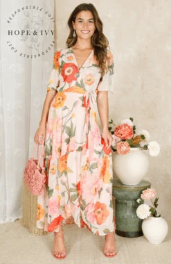 The Cordelia Flutter Sleeve Maxi Wrap Dress with Tie Waist
