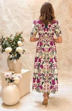 If you’ve been searching for the perfect, feminine, full-skirted tea dress to wear to every soirée this season, you need look no further than The Emily. Whether you’re off to a summer picnic or a garden party, this hand-designed, mirror printed midi dress is a floral dream come true. Made with 100% cotton, and cut with a flattering V-neck and timeless puff sleeves, she’s destined to be a fan favourite all the way through to autumn. We love the little details, including the rickrack trim and flexible smocked back which allow for ease of wear.