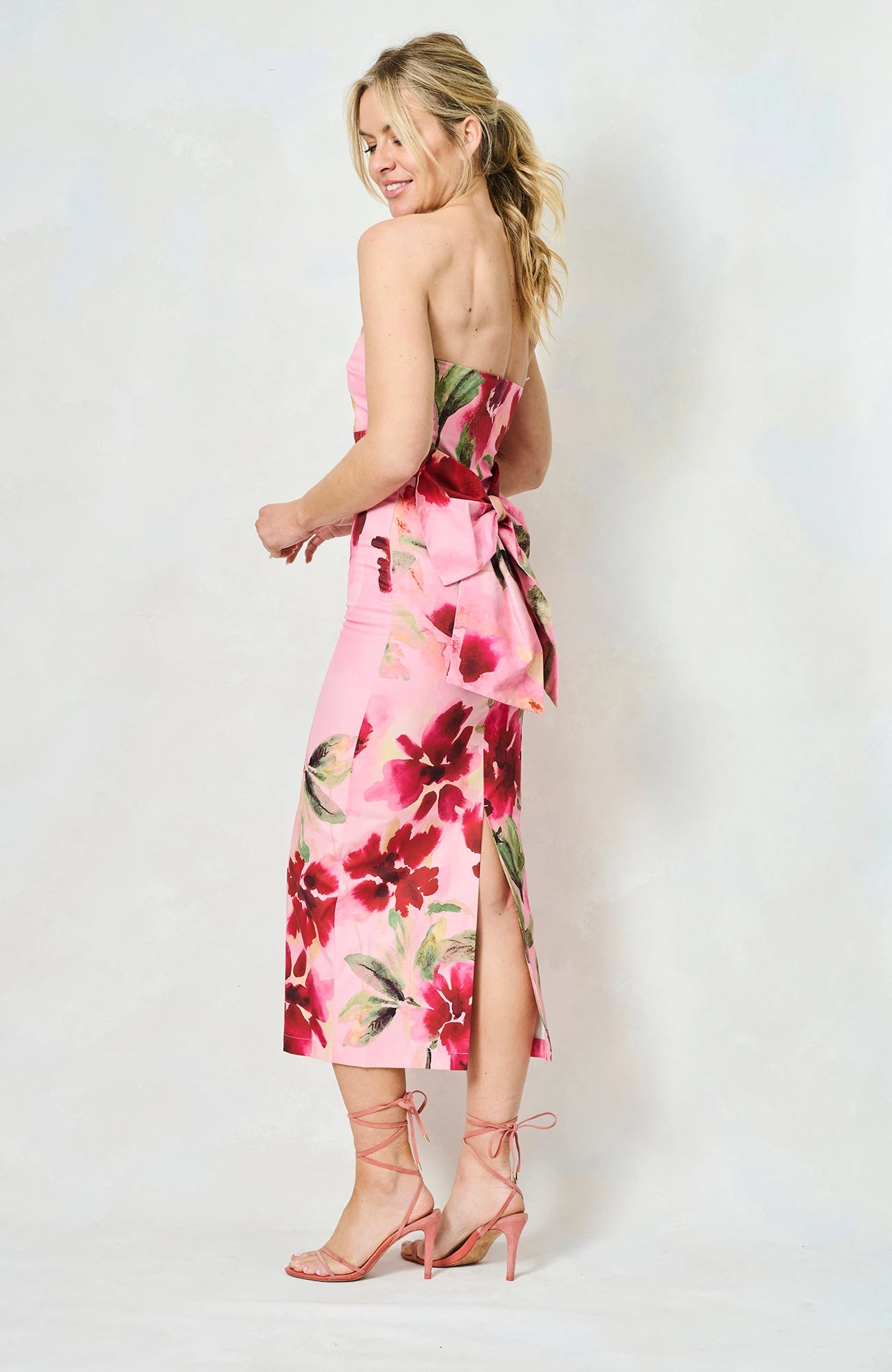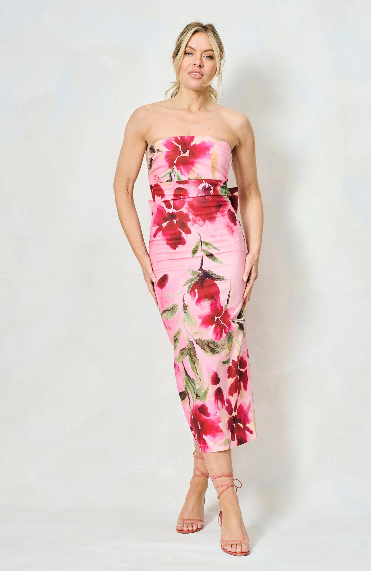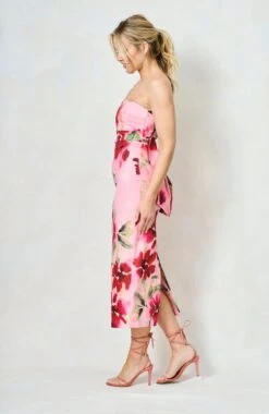 A strapless occasion dress is a summer staple, and The Faith – new to Hope & Ivy this season – is an absolute showstopper. It’s cut to a midi-length silhouette, with a stunning floral print strewn across a soft pink base. We love how the strapless neckline and oversized bow detail adds a sense of old Hollywood glamour and will certainly be reaching for this style ahead of days out at the races.
