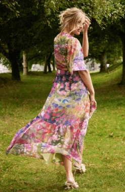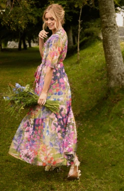 Have heads turning all season long with the help of this chic wrap maxi dress from our new Hope & Ivy x Love Cherish collection – new in for 2025 and inspired by the breathtaking shades of Ireland’s scenic landscapes. With pops of pink, purple, blue and green in a hand-painted floral print, this fully adjustable wrap dress is a beautiful choice for all of your upcoming seasonal outings. Pair with neutral heels and a matching clutch to allow the stylish shades and cascading skirt of this stand-out design truly steal the show.