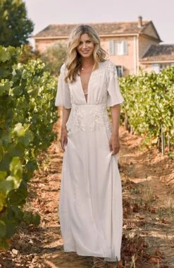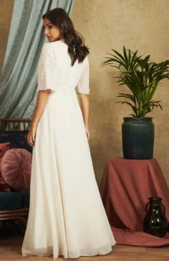 The Juliette Bridal Plunge Front Embellished Maxi Dress With Flutter Sleeve