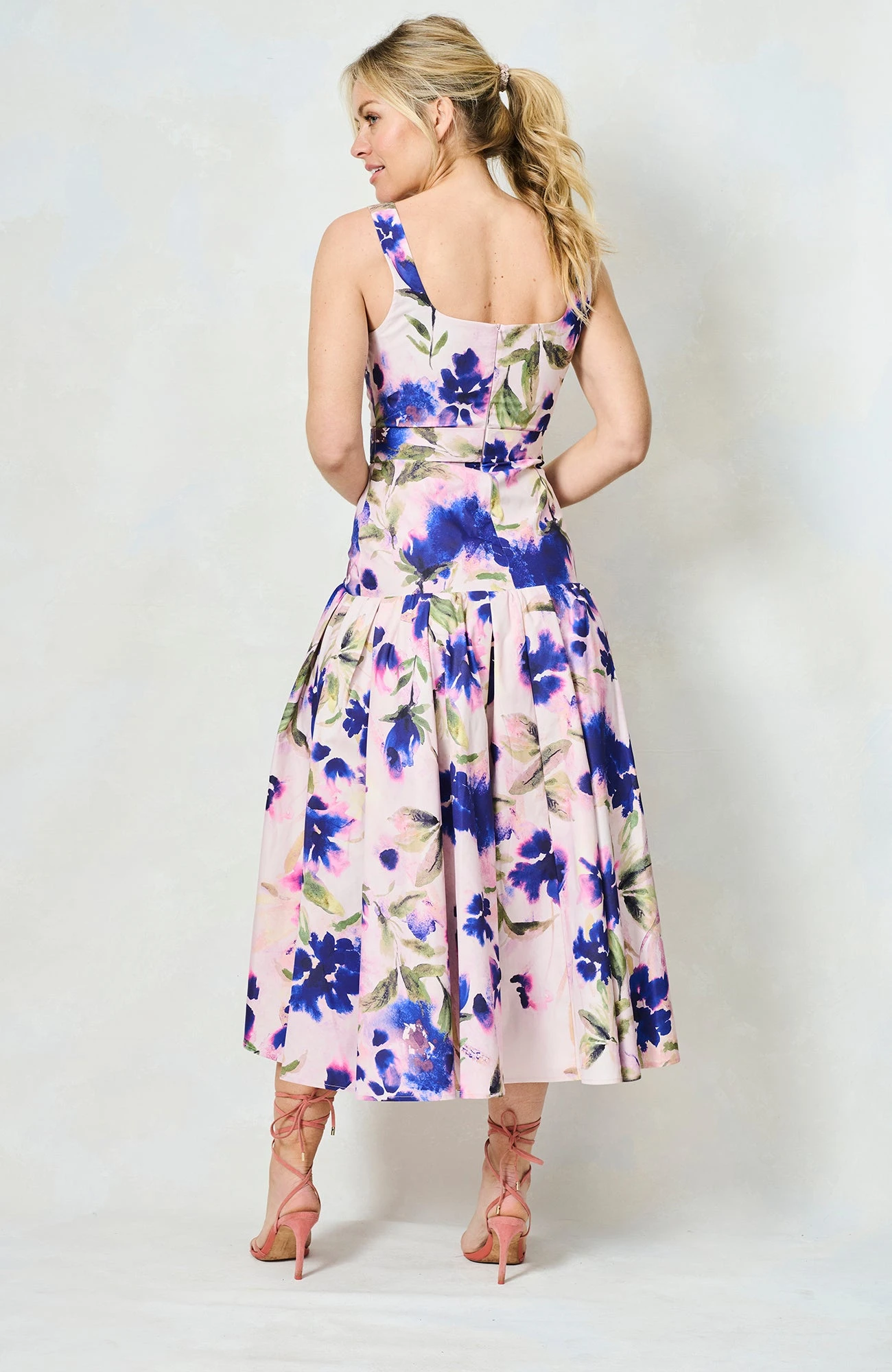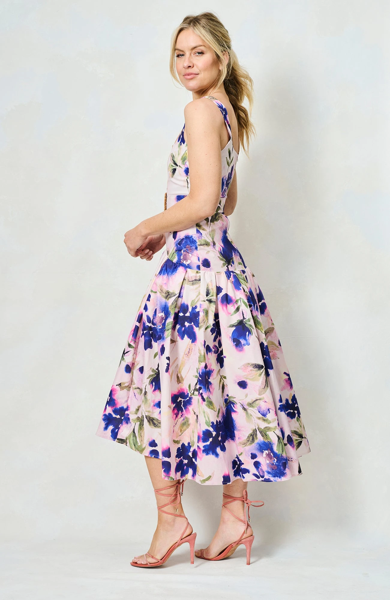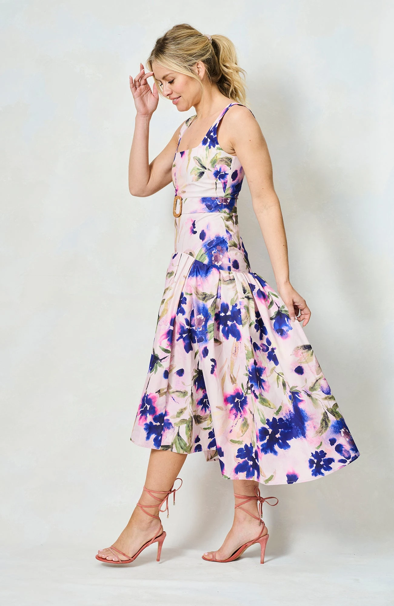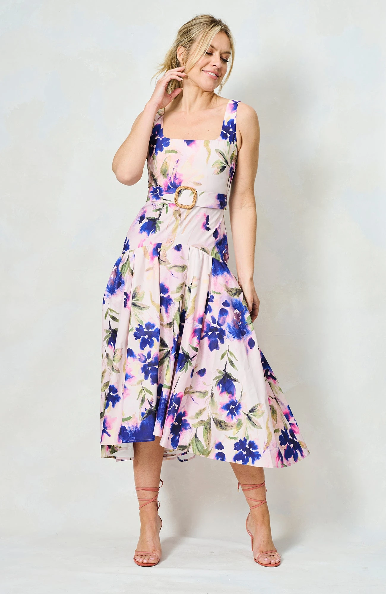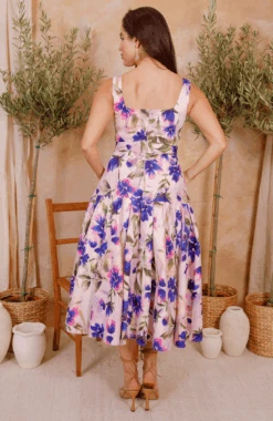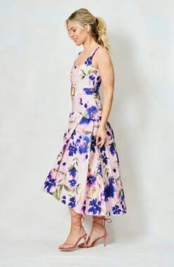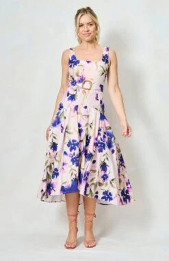 Introducing our new go-to summer silhouette, and a dress we’ll be returning to time and time again this season, The Lavinia is a drop waist midaxi style with a beautiful, floral, hand-painted print. With a chic square neckline, waist-cinching belt, and a full, waterfall skirt, she’s a dream come true for race day season and those all-important weddings!
