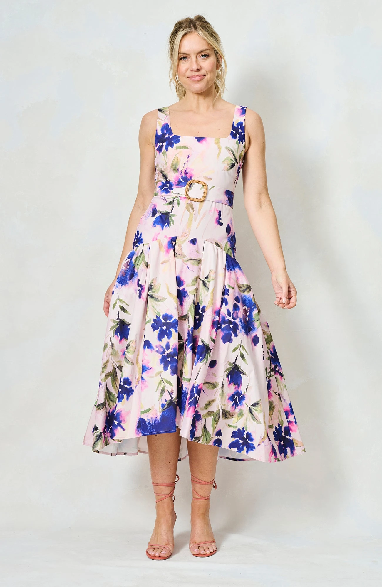 The Lavinia Square Neck Drop Hem Midaxi Dress with Waist Belt