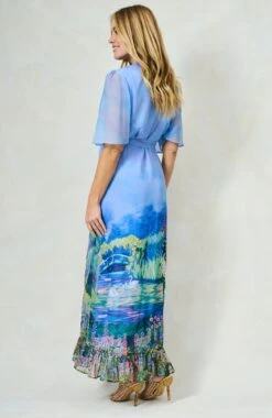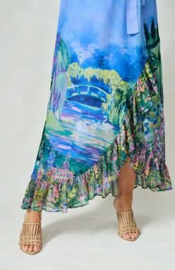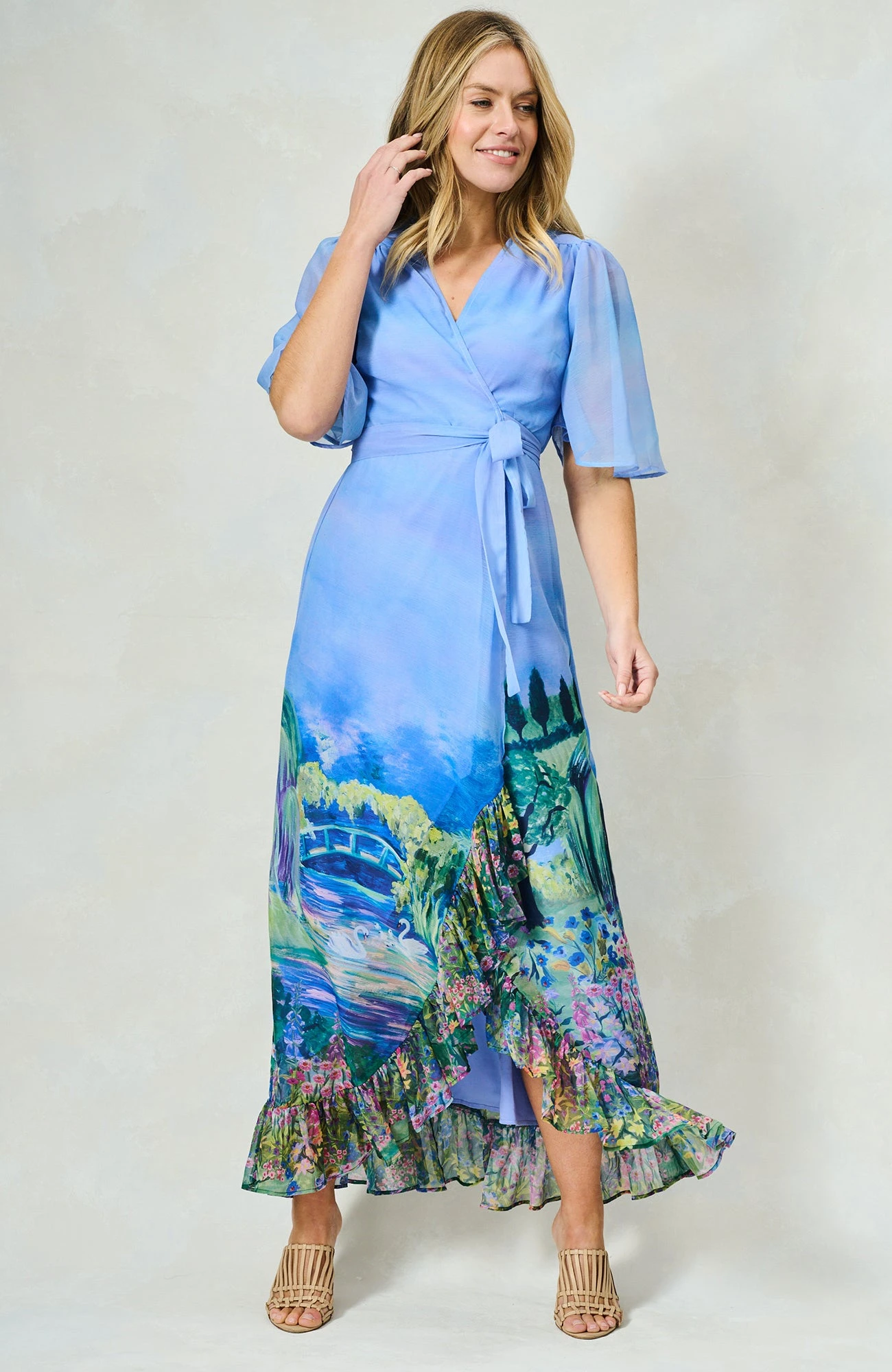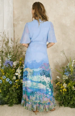 Hope & Ivy’s classic wrap dresses are endlessly flattering, and The Nadia is a romantic update on the timeless silhouette. This painterly blue style is printed with a watercolour scene inspired by Monet’s gardens in Giverny for an elegant, fairytale take on our famous florals. We love how the ruffled hem is presented in a contrast print for added interest.