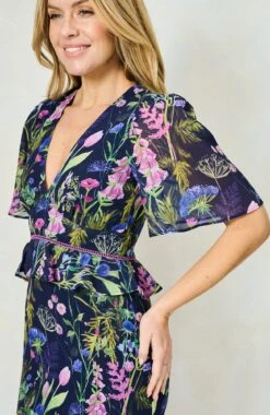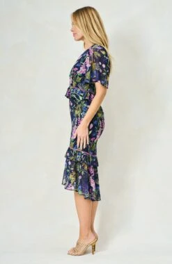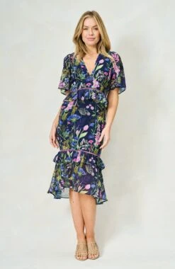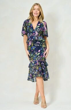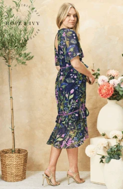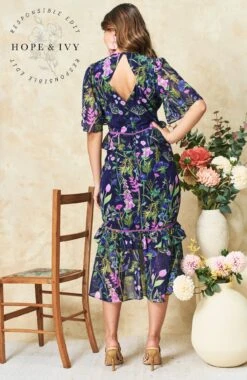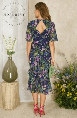 A classic tea dress is a must-have for your wardrobe, and Hope & Ivy’s The Naomi style is patterned with purple and blue florals strewn over the navy base. The v-neckline and peplum waist create a striking silhouette, complete with a tiered ruffle skirt that finishes at mid-calf length. Wear yours with sandals and a clutch for your next special occasion. Whatever you’re doing, you’re guaranteed to enchant in this stunning piece.