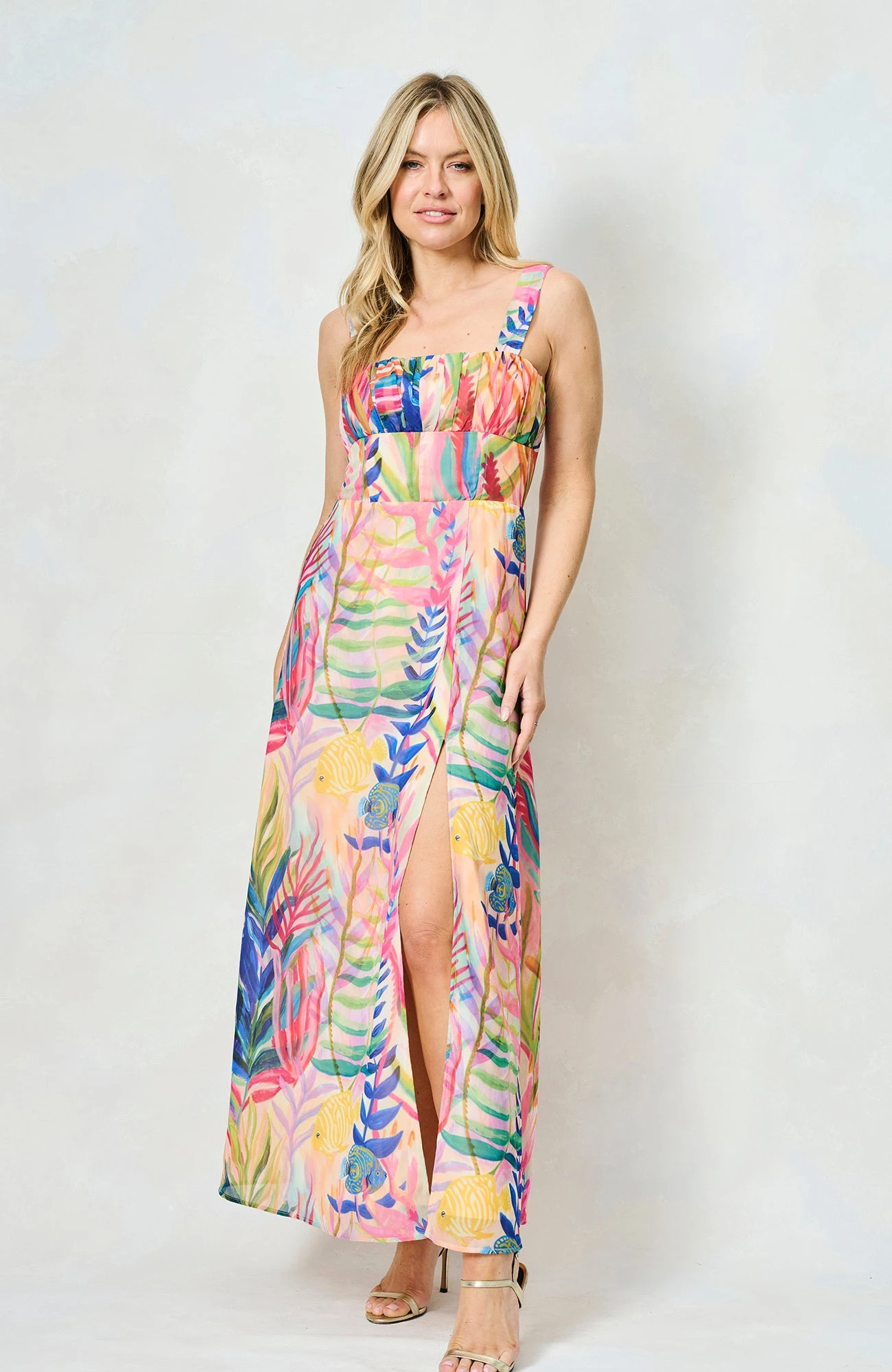 Summer dresses rarely come as show-stopping as this one. With a hand-painted underwater print, this new in for SS25 style is a stylish maxi that’s guaranteed to make an impression. Complete with a thigh split, a contemporary, square neckline, and shirring in the bodice for ease of wear, this perfectly printed piece is a dreamy addition to our latest collection.