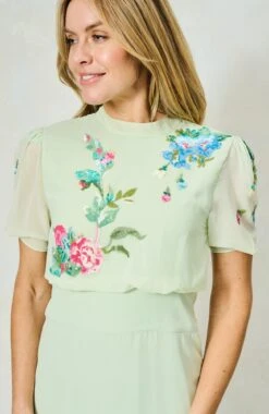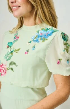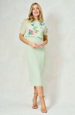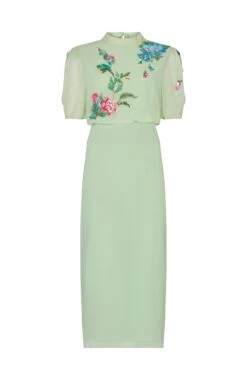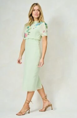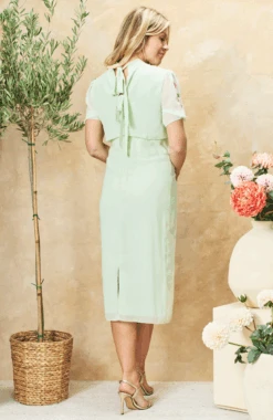 This timeless, pale green, Hope & Ivy midi dress is a must-have for your wardrobe. The Phillipa is ornately embellished with beads and sequins for a 3D floral effect, while the back bow details create a feminine finish. The round neckline and pencil skirt create a stunning silhouette, sure to become an instant classic.