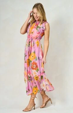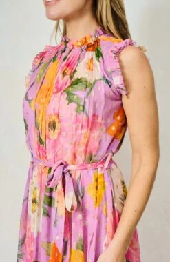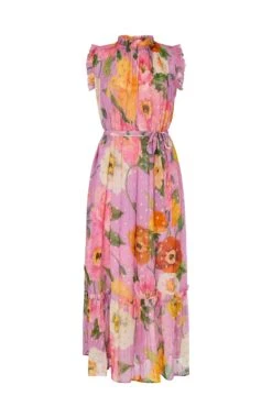 The Signe High Neck Maxi Dress with Ruffle Trim and Waist Tie