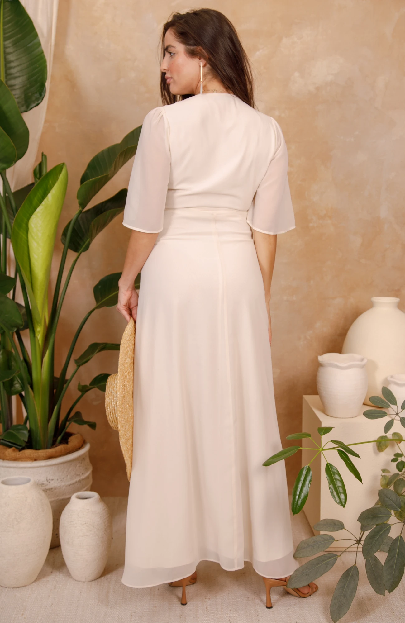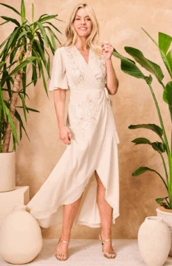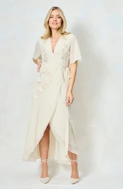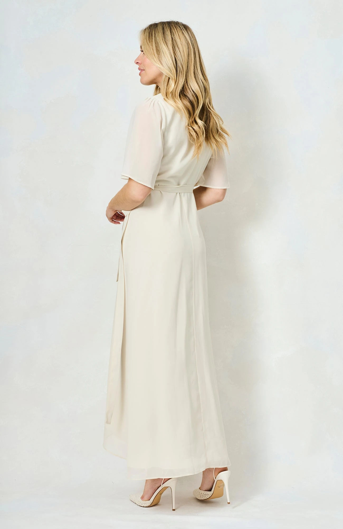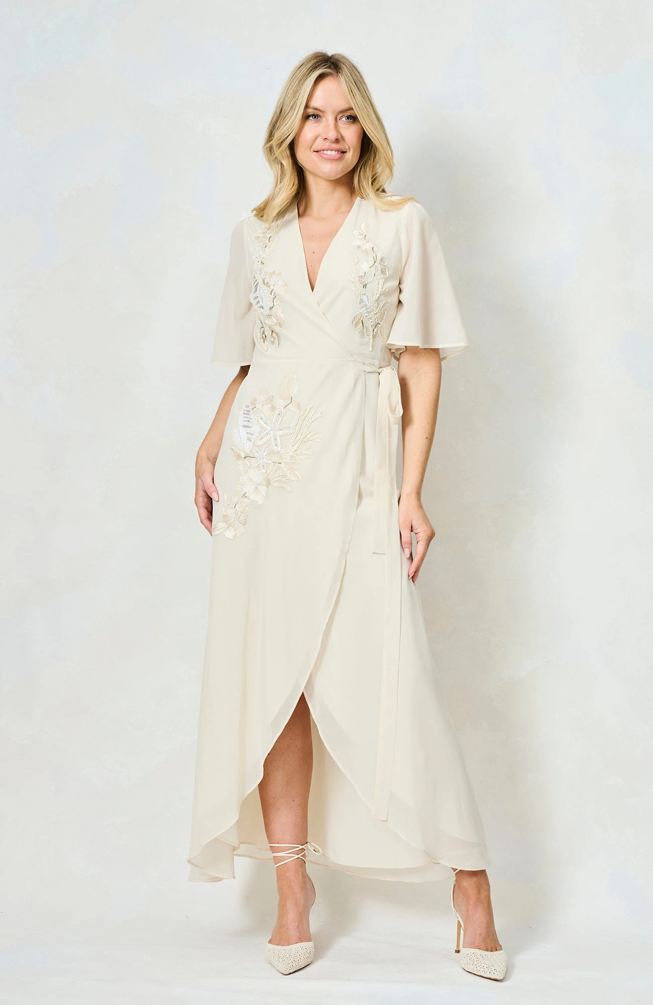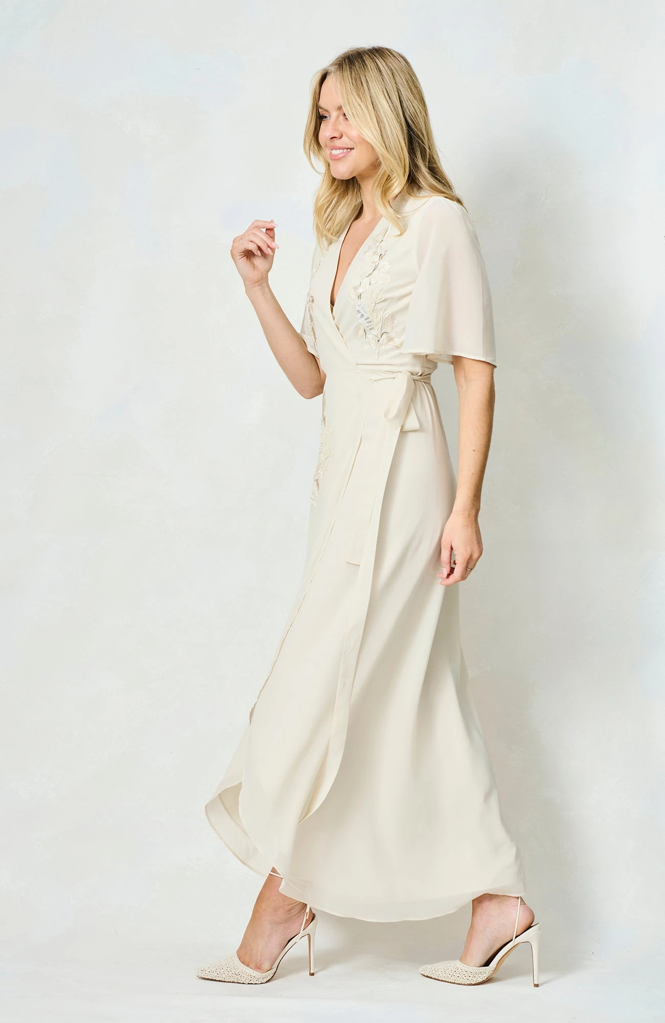 The Violet Embellished Maxi Wrap Dress with Flutter Sleeve