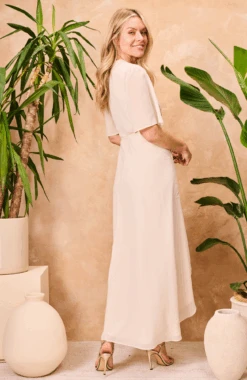 Please note that we recommend wearing neutral, skin-tone underwear with all white and ivory garments.