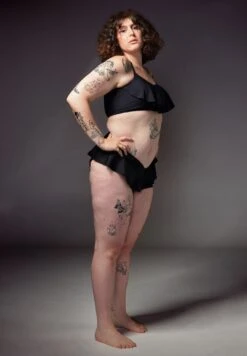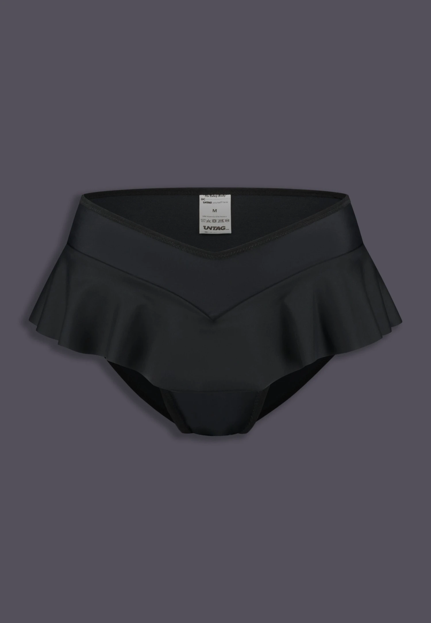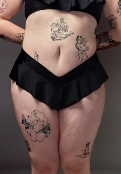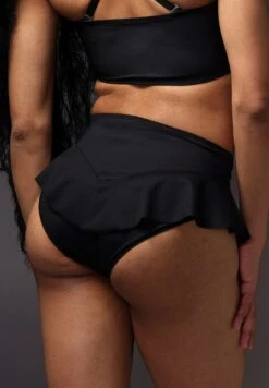 The Tucking Bikini Brief Ruffle is a pair of high waisted bikini bottoms. The slip will comfortably flatten the penis and scrotum which creates a smooth and sleek pelvic area. The advanced breathable material will keep the genitals safely and firmly tucked against your body. The Tucking Bikini Brief Ruffle gives your hip an extra curve due to the playful ruffle, and accentuates your bottom. Please note: these are only the bikini bottoms, not a whole bikini.