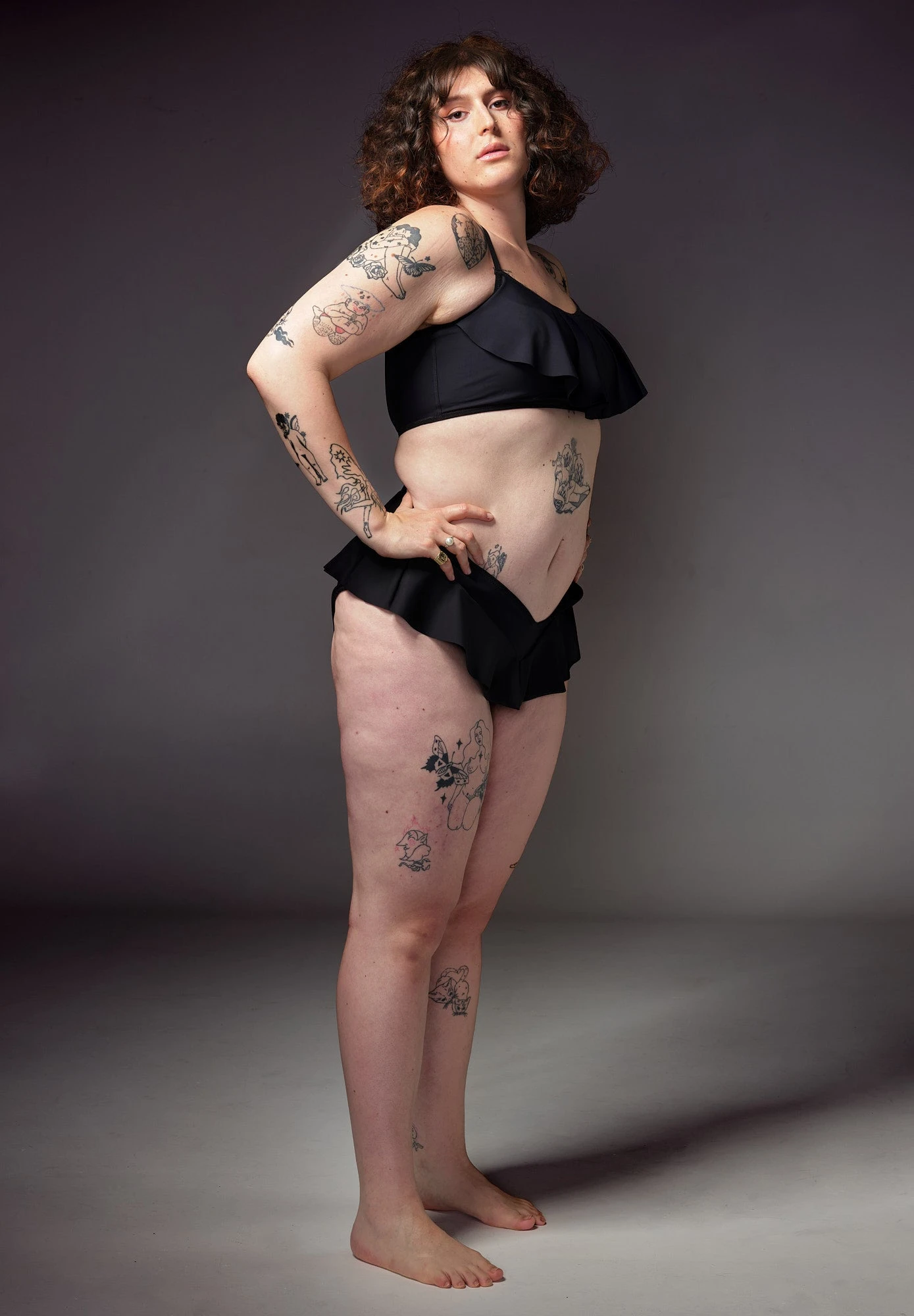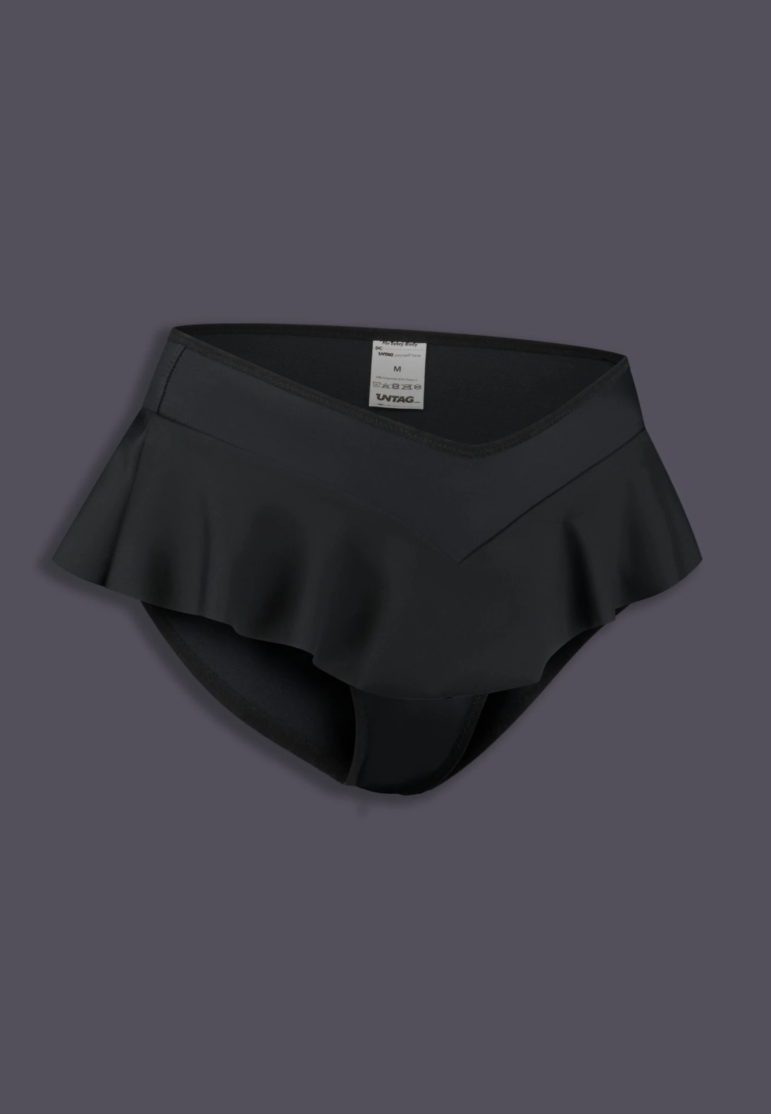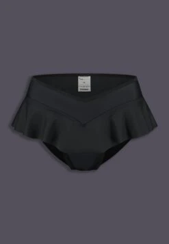 The comfortable and fashionable bikini bottoms for safe and sleek tucking. The playful ruffle will accentuate your hip curve and will hide your genitals.Â
